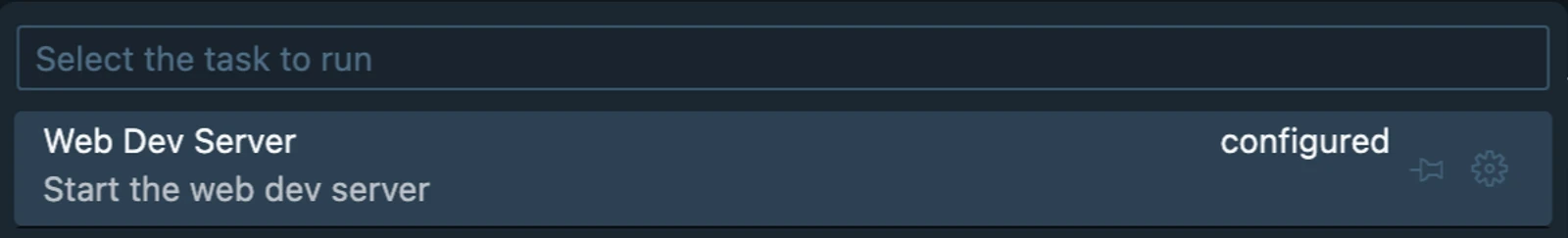 Now let’s open up the command palette one last time and select Tasks: Run Task . Here you can now see all of our defined tasks including the Development task we just added.