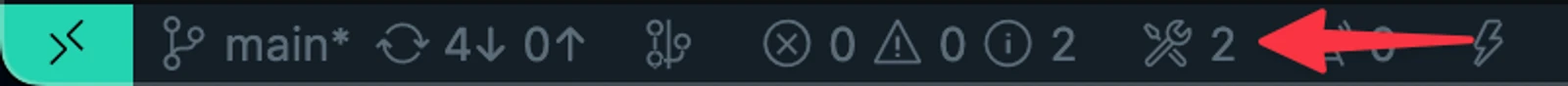 Let’s select it and see what happens. At first nothing much. Remember, we set the terminal to only open up when there is an error but notice the icon in the bottom bar in VS Code.