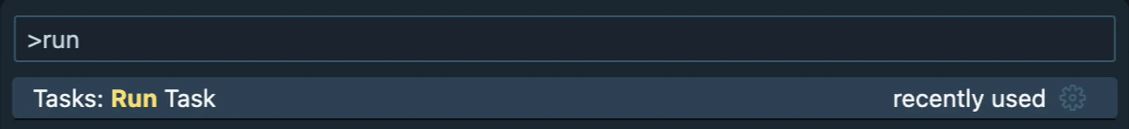 Now if we open up the command palette again and select Tasks: Run Task we can see our newly created task right at the top.
