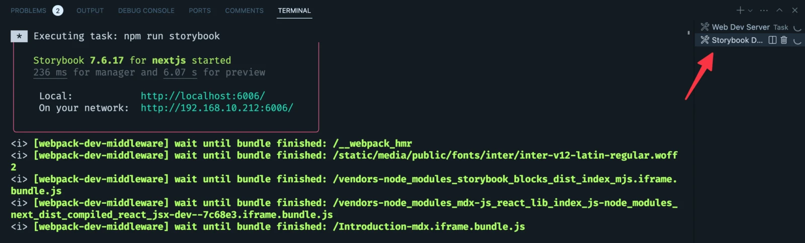 Now we have two tasks in our config. One to start the Next.js dev server and one to start the Storybook dev server.